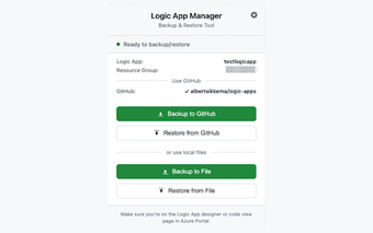 Logic App Manager is een handige Chrome-extensie die gebruikers in staat stelt om Azure Logic Apps eenvoudig te back-uppen en te herstellen via de Azure Management API. Deze tool biedt een gebruiksvriendelijke interface die rechtstreeks in het Azure Portal kan worden gebruikt, waardoor het proces van gegevensbeheer aanzienlijk wordt vereenvoudigd. Belangrijke functies zijn onder meer een een-click backup naar lokale bestanden en de mogelijkheid om backups te integreren met GitHub voor versiebeheer. Dit maakt het mogelijk om eerdere versies van Logic Apps te herstellen wanneer dat nodig is.